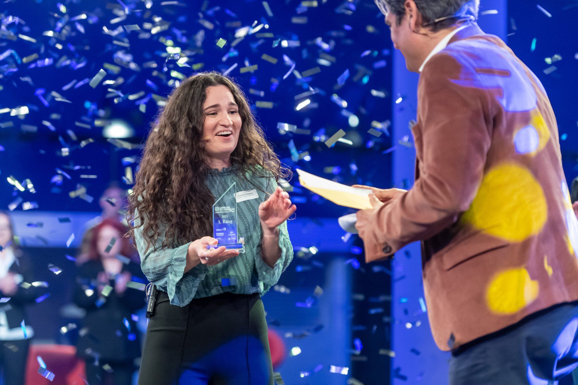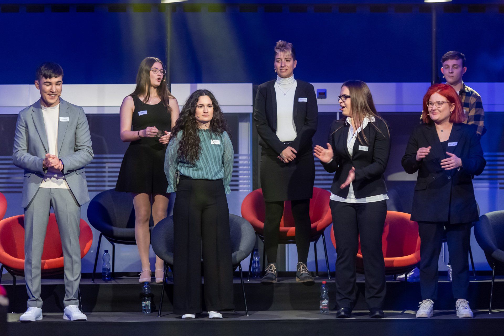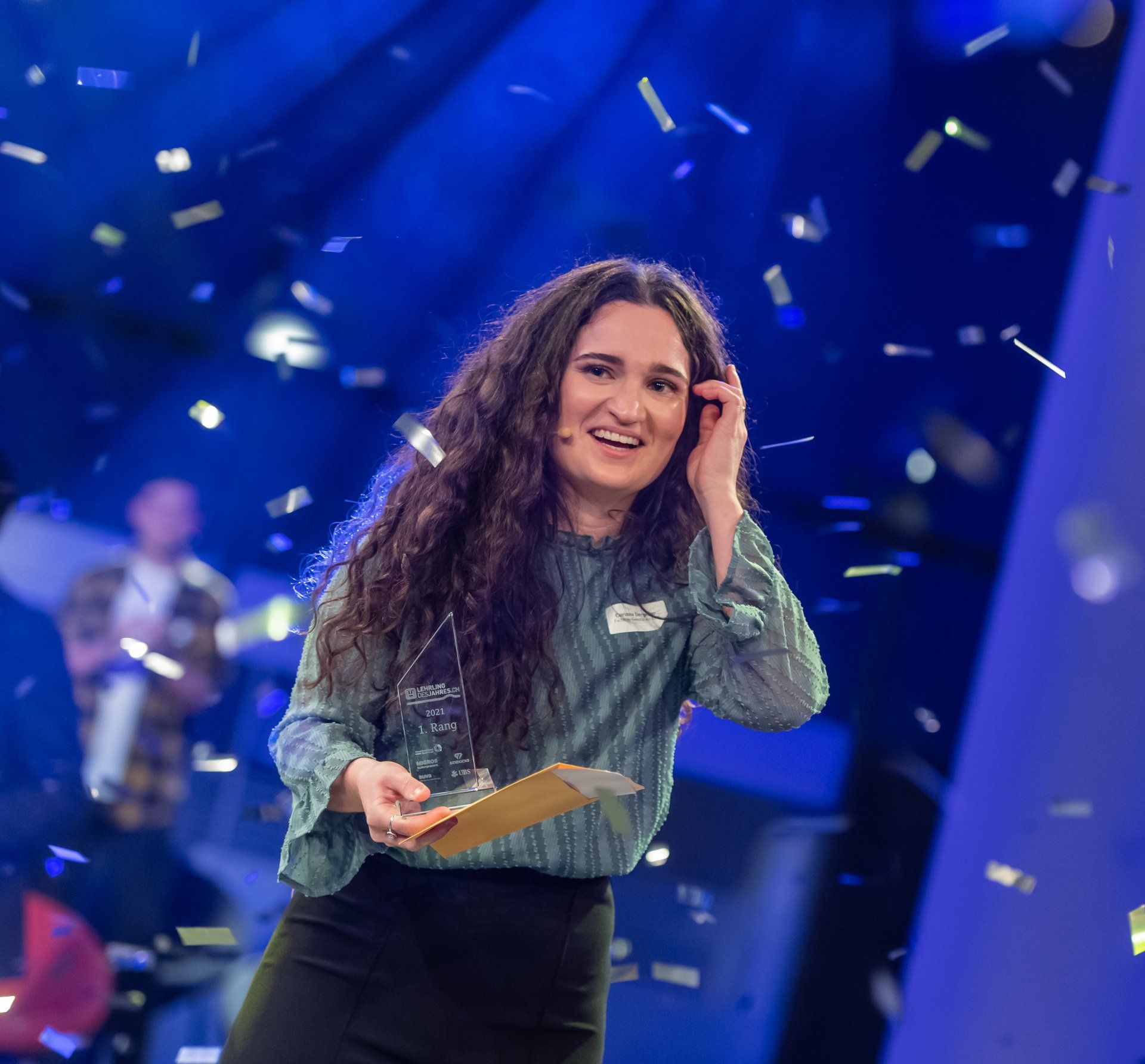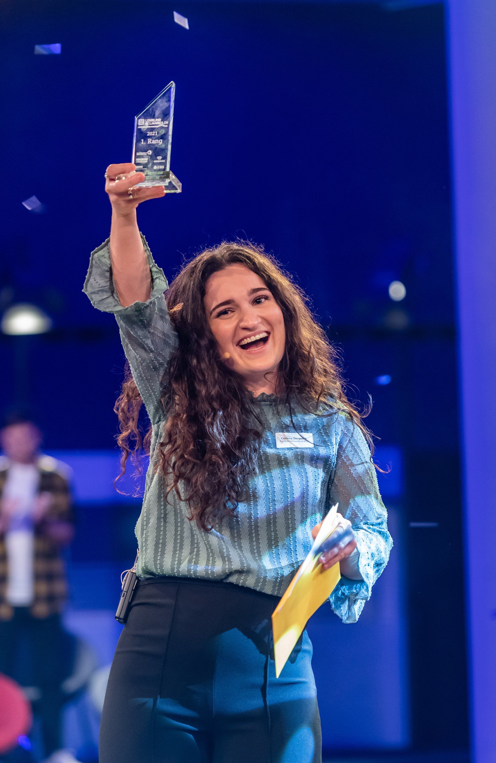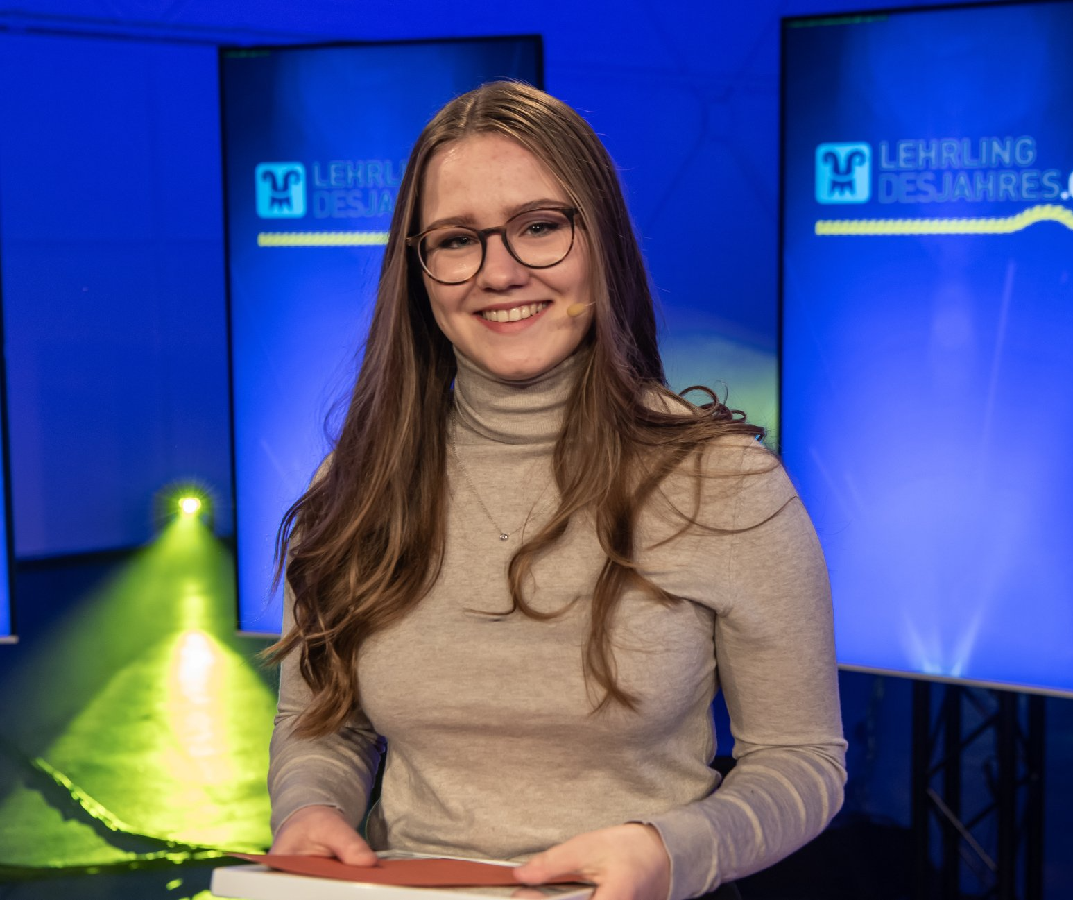 Dienstag, 23. November 2021 abends kurz nach 20:00 Uhr in der UBS-Schalterhalle in Basel ist es klar. Corinna Dergeloo hat sich gegen ihre Mitfinalist*Innen bei den 10 Posten beim Wettbewerb «Lehrling des Jahres» durchgesetzt und wurde an der live Preisverleihung zum